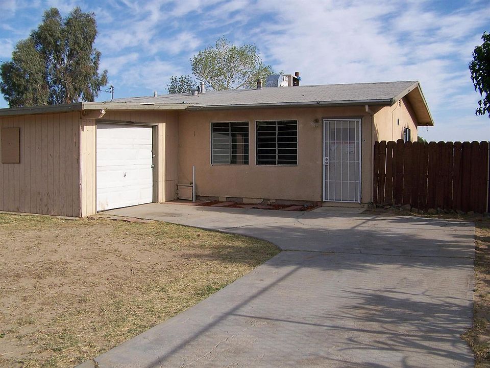 Three bedroom one bath home for sale in Barstow. Fenced yard with a detached one car garage. This home has lots of potential.
