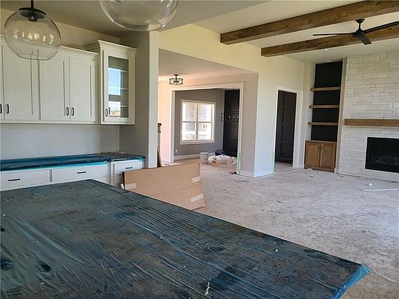 Breakfast room and Kitchen Island. Spacious walk in pantry. The half bath is tucked away off Mud Hall. All Bedrooms are on the Upper Level. Once you're on the 2nd floor you have a few steps to the Master Suite. The master bathroom has two separate vanities, a tub and a separate shower. The walk in Closet is off the the bathroom. Spacious 2, 3 and 4 bedrooms. All have access to a bathroom and walk in closets. Laundry Room off the hall. Covered Deck off breakfast area and this home backs to greenspace and future walk trail. Beautifully designed floor plan. The Greens at Prairie Highlands is surrounded by the Prairie Highlands Golf Couse!