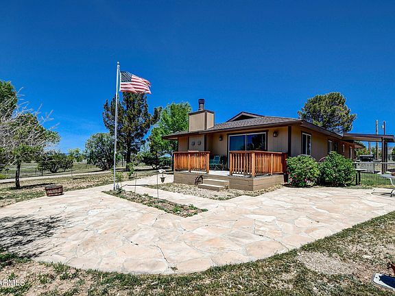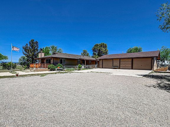 Two parcels are seamlessly merged together to equal a total of 9.795 acres. Nestled on sprawling acreage, this picturesque single family home offers an idyllic retreat enveloped by panoramic mountain vistas. Offering 3 bedrooms and 2 bathrooms, this charming residence exudes warmth and character. The inviting living room features a cathedral ceiling adorned with rustic beams, accentuating the space and charm. A wood-burning fireplace with exquisite Mexican brick infuses the room with cozy ambiance for chilly evenings. The ornate front door welcomes guests, while new storm doors on both the front and back entrances providing weather resistance. Recent upgrades include a new air conditioning and heating unit, new windows, and fresh exterior paint, ensuring modern comfort and aesthetic appeal. The home and its accompanying three-car garage, complete with storage and workbenches, boasts new roofs, offering peace of mind and longevity. A newly installed gravel driveway with gated entrance leads to the residence, which sits back a quarter-mile, offering unparalleled privacy and tranquility. The landscaped grounds boasts a variety of trees, including elm, mondell pine, Arizona cypress, juniper, purple robe locus, Arizona ash, locus and chase. Fruit trees, include apple, plum, mulberry, and Arizona walnut, creating a serene oasis. The driveway is flanked by majestic pine trees, while automatic irrigation ensures lush greenery thrives. Additional amenities include a shed, well house, chicken coop, and greenhouse with two garden beds with carrots, sweet potatoes, celery and basil. A fenced and cross fenced perimeter, complete with chain link and wire fencing, ensures security and functionality, while an interior yard with wire fencing and gates offers versatility. Great for children and the family pets. Outdoor enthusiasts will delight in the covered back patio, perfect for al fresco dining, and rustic red barn with four stalls, corrals and turnouts. A horseman's paradise with room to expand. A 10x16 concrete and block patio with redwood railing off the dining area provides a serene spot to admire the breathtaking sunsets to the west. With one RV hook-up equipped with 30 amp, power, water, and sewer access, the additional RV hook-up has 30 amp, power and is near water. This property offers endless possibilities. Update this home to your own personal style. Enjoy the relaxation and recreation of this beautiful property! Parcel numbers: 304-01-032A and 304-01-032B, both parcels combined are being sold at the list price.