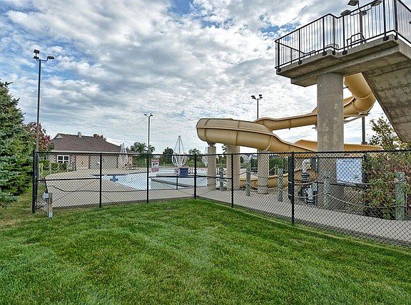 Elementary School walking distance, Jr. High, YMCA and main street bicycling distance. Private subdivision pool with 18" high water slide and clubhouse. 27 Acre lake/park with walking paths. All bedrooms have walk-in closets. 9 Ft ceilings on 1st floor and basement. Full paneled maple cabinetry throughout, 42" uppers in kitchen. Corian counter tops in kitchen. Park like yard professionally landscaped with irrigation system