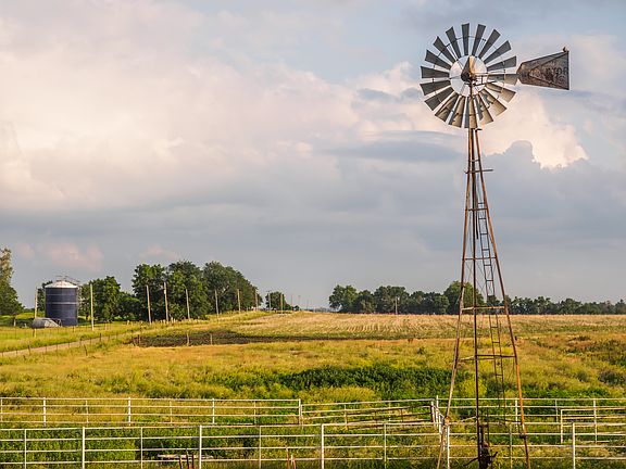 Realtors bring your buyers. Beautiful 3 bedroom, 1 1/2 bath hobby farm for sale just outside of Holton, KS. Located just off of a paved road, only 2.5 miles north of Holton, and 1/2 mile west of US 75. Lots of mature trees (pine, oak, maple, and pear) surround the property and provide ample shade and home to a myriad of native birds. Graded large lawn has been well-maintained. The majority of the home faces to the east and the west, with large 5' tall Pella and Anderson windows throughout. Recent exterior work shows new siding, paint, and stone accents. Large fenced corrals are perfect for horses or cattle, and the original windmill tops off the beauty of the property. Entering through the front or rear doors, you will find beautiful hardwood or tile floors in the kitchen and dining room, with all 3 bedrooms on the main level. The kitchen has gorgeous granite counter tops while the bathroom has quartz. Up a few stairs and you will be greeted by the spacious living/great room with wood or gas-burning fireplace. Large picture windows give you a commanding view of the surrounding countryside. 30x60 equipment shed with full electrical. Rustic barn with electrical and 3 storage closets. Fenced pasture and corrals with 2 automatic waterers. Natural gas, well water, lagoon.