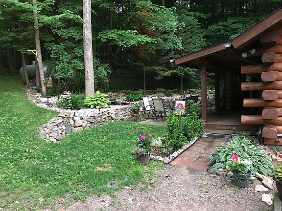 Rustic true log home on 2.57 acres newer roof newer deck nice cozy home with plenty of storage in the out buildings 24 x40 detached garage/workshop and a 21x30 cold storage shed and a large attic for storage this is a must see house in the country But not far from the nice amenities of town. This home has a three season porch/entry way as you enter the home nice kitchen with handmade real wood cupboards dining and living room with vaulted ceiling and finished with pine tongue and groove and a cozy fireplace to keep you warm as you relax and watch tv while unwinding from the day. The master bedroom and bathroom are also located on the main floor there is a west facing deck to watch the sunset on as well. As you go downstairs you will find two finished bedrooms with very large windows for a great view and letting in plenty of sunlight. This is a walkout basement. The washer and dryer and second toilet are also located downstairs then the gas furnace and wood stove sit in a central location great for heating and a large wood room for holding enough wood to get through the winter if you wanna burn wood and save money on heating. There is also a large newly renovated attic great for storing all the things you don’t wanna look at everyday. As you go in the 24 by 40 detached garage you’ll find it’s insulated with a concrete floor plenty of room for two vehicles to be parked and still have room for a nice work shop. There is a rustic finished bar area in the shop as well as a hydrant for water. The back shed is 21 by 30 there is power with outlets and lights and a gravel floor. House is surrounded by a beautiful flower garden with a little pond and waterfall and rock retaining walls. There is a patio area and covered porch also. Any questions please call Brent at 715-790-7444 motivated seller don’t be afraid to call a schedule a time to look at it it’s a must see.