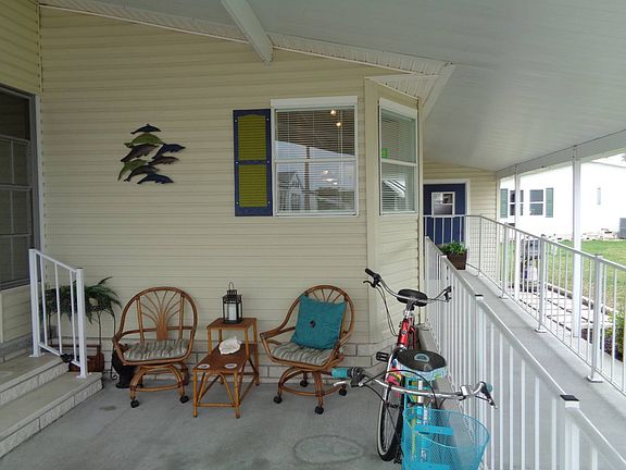 JUST BEAUTIFUL!!! THIS IS A FABULOUS REMODEL DONE IN GREAT TASTE.. FROM OUTSIDE YOU WILL NOTICE THE BEAUTIFUL COLORS SELECTED FOR THE TRIM AD THE SHUTTERS.. THE LANDSACPE IS INVITING, YOU CAN ENTER FROM THE FLA ROOM IN THE FRONT, OR THE REAR SIDE DOOR.THE FLA ROOM HAS WINDOWS AND SCREENS, AND IS A FABULOUS AREA TO ENJOY THE FLA WEATHER. THE SLIDERS LEAD YOU IN TO THE LIVING ROOM, THIS IS A OPEN FLOOR PLAN. LAMINATE THROUGHOUT, BEAUTIFUL DESIGN SHIP LAP ON THE LIVING AND DINING FAR WALL. THE KITCHEN HAS BEN TOTALLY REMODELED WITH A BIG ISLAND WITH STORAGE AND THE SINK IS IN THE ISLAND... MAKING PLENTY OF COUNTER SPACE BY THE STOVE AND FRIDGE, FOR A CHEFS DREAM KITCHEN...ALL NEW APPLIANCES, NEW LIGHTING, NEW CEILING FANS, FRESHLY PAINTED, TILED BATHS, NEW MIRRORS IN BATHS AND LIGHTING, BOTH BEDROOMS ARE A GOOD SIZE.. THIS HOME COMES PARTLY FURNISHED, LOCATED IN A 55 PLUS 5 STAR RESORT STYLE COMMUNITY THIS HOME IS A MOVE IN READY, AND IS IMMACULATE HAS A NEWER ROOF AND A/C CALL LINDA