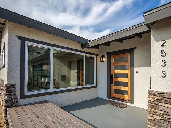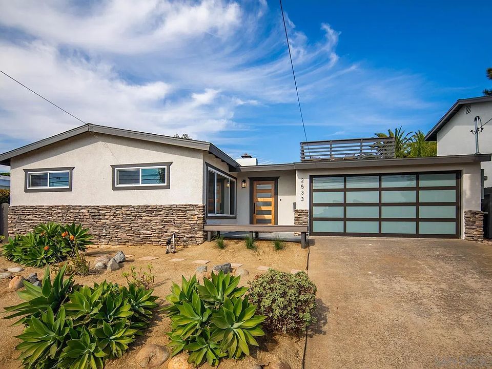 Beautifully remodeled single story 3 bedroom, 2 bathroom home in coveted Bay Park with panoramic Mission Bay and Pacific Ocean views from the rooftop deck. Located on one of the most desirable streets in Bay Park, this open concept home boasts a gorgeous remodeled kitchen with white shaker cabinetry, quartz countertops, brand new high end stainless steel appliances, farmhouse sink, and island with waterfall edge. Primary suite with luxurious spa inspired ensuite bathroom featuring a large walk in shower with custom tile and dual shower heads. The fully fenced private backyard features a sparkling pool and multiple entertaining areas. Attached two car garage with driveway. Extensive upgrades include newly remodeled kitchen and bathrooms with signature hardware and top of the line polished nickel fixtures, brand new roof, brand new interior and exterior paint, brand new waterproof lvp flooring throughout, custom fireplace, recessed lighting, and brand new front door, interior doors, and garage door. Enjoy stunning sunsets and fireworks over the bay and ocean. Centrally located close to Mission Bay, world class beaches, Tecolote Canyon and Golf Course, San Diego Tennis and Racquet Club, Western Hills Park, highly rated Bay Park Elementary, USD, convenient freeway access, and walkability to yoga, pilates, shops, and local restaurants. Amazing opportunity to live in this highly desirable coastal community and enjoy all that this lifestyle has to offer!
