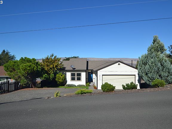 Welcome to your new home in The Dalles, Oregon with river views! This charming, single level 3-bedroom, 2-bathroom house is situated on a tranquil street, offering a peaceful and inviting atmosphere.From the moment you step inside, you'll be greeted by the warmth and spaciousness of the vaulted ceilings. The open living area is perfect for gatherings, and the large windows frame stunning views of the Columbia River, The Dalles Bridge, and The Dalles Dam.The kitchen boasts ample counter and storage space and includes a small pantry and modern appliances with an adjacent dining area.The three bedrooms are comfortable spaces for rest and relaxation. The master suite includes an ensuite bathroom for added convenience.Step outside to discover a large lot with immaculate landscaping with underground sprinklers and fully fenced backyard, perfect for gardening or outdoor activities. The two-car garage and storage outbuilding offer ample space for vehicles and storage needs.This house is move-in ready, offering a clean and well-maintained space for you to call home. The attention to detail is evident both inside and out, from the pristine yard to the inviting living spaces. Living here means enjoying the best of The Dalles, with a quiet street, panoramic river views, and a sense of tranquility that's hard to find elsewhere.Don't miss out on the opportunity to make this turn-key house your own. Schedule a viewing today and experience the beauty and comfort of this remarkable property in The Dalles, Oregon.