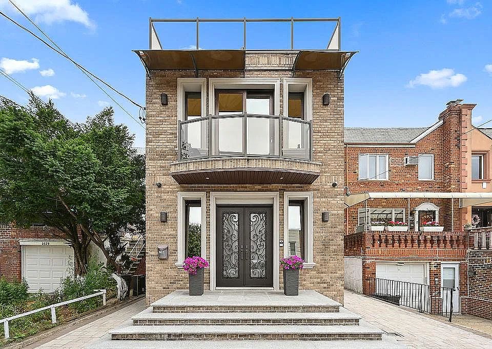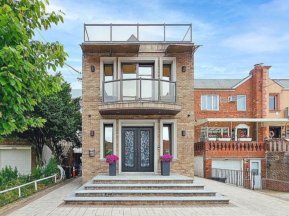 Welcome to your dream home in prime Sheepshead Bay! This fully detached luxury residence offers over 3,500 sqft of living space, 4 bedrooms, 3 bathrooms, a finished basement, 3 terraces, a private backyard, and a 3-car driveway. Every detail of this thoughtfully designed home maximizes efficiency and lavish living. Inside, you'll be greeted by an expansive open living room with limited edition black & silver Kahr flooring, large tilt and turn windows, and a 48" Cosmo gas burning fireplace beneath a hand-made stone centerpiece. The first floor features a tastefully designed powder room and a massive modern kitchen equipped with high-end appliances, Porcelanosa tiles, and abundant custom-built cabinets. The wood staircase is accompanied by floor-to-ceiling windows, illuminating the center of the home. The second floor houses the master suite with a custom built-in wall of closets, a fireplace, and a private balcony, along with an en-suite spa-like bathroom. Two additional bedrooms with private balconies and a second full bathroom complete this level. The third floor offers a versatile attic/loft/bedroom with a private terrace. The fully finished basement provides ample space, including a powder room, laundry room, and storage closets. Radiant heating, a Fijutsu heating and air conditioning system with 7 zones, as well as built-in speakers, cameras, and security, enhance the home's comfort and convenience. Step outside to the beautifully landscaped backyard oasis with planters and enjoy the privacy of your own retreat. The driveway easily accommodates 3-4 cars. Don't miss the opportunity to see this spectacular home for yourself!