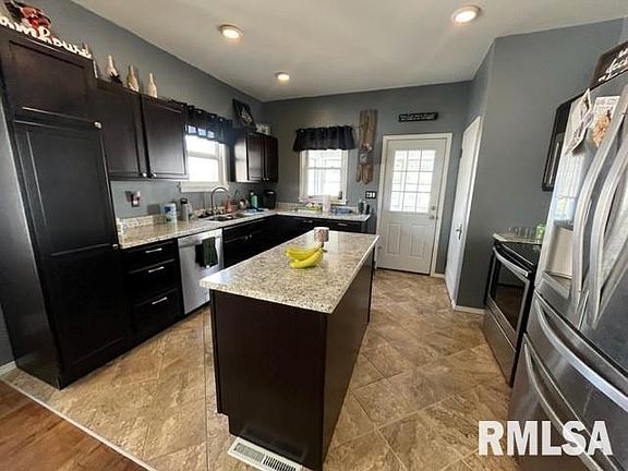 Beautiful bungalow with tons of updates inside & out! You won't believe the before and after photos! This transformation includes a brand new kitchen with all new cabinets, countertops, stainless steel appliances, center island, ceramic tile and has been opened up into the dining and living rooms. Full bath has been remodeled with glass shower doors, ceramic tiled shower surround and flooring. New lighting, flooring & paint throughout the entire home. Upstairs include a massive master bedroom, 7x8 walk-in closet and a sitting room off of the master bedroom. The lower level includes a finished 12x19 family room with new carpet, custom built cabinets and small wood countertop bar space. There is an additional 11x34 storage room with painted paneling, concrete floor and drop ceiling. The laundry/utility room has an updated furnace, radon mitigation system, water heater and 100 amp electric. Outside features include; 8x14 covered front porch, 7x9 enclosed back porch, patio area and extra deep 1-car heated garage with workbench & cabinets, long driveway and additional gravel parking behind the garage.