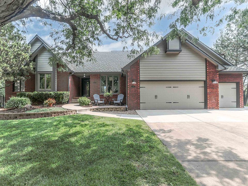 Nestled at the back of a cul-de-sac on the 15th tee of Reflection Ridge Golf Course, this meticulously updated home offers luxury living in one of northwest Wichita’s most sought-after communities. Located in the Maize South School District and just minutes from the area’s best dining, shopping, and grocery options. Step inside to discover 10-foot ceilings and thoughtfully designed spaces throughout. The main floor boasts both formal and informal dining areas, a spacious living room, and a cozy family room featuring a paneled accent wall and gas fireplace. The beautifully remodeled kitchen is a chef’s dream, with solid maple cabinetry, quartz countertops, new tile backsplash, engineered hardwood flooring, a double oven, and custom lighting throughout—including in the pantry and cabinetry throughout the home. Retreat to oversized bedrooms, each featuring walk-in closets, and enjoy spa-inspired bathrooms with tile showers and high-end finishes. The fully finished walk-out basement expands your living space with a large family room, second fireplace, built-in cabinetry in the game area, and an oversized wet bar—perfect for entertaining. Step outside to a screened-in covered patio or relax on the covered deck with pergola overlooking the golf course. Additional outdoor features include an extensive concrete patio area, a professionally landscaped and fully fenced yard, a sprinkler system fed by a private well, and new siding with fresh exterior paint. Enjoy the benefits of Reflection Ridge HOA amenities including walking paths, playgrounds, and ponds, with optional access to golf, pool, and tennis facilities. Practical upgrades include reverse osmosis, water softener, a heat pump HVAC system, and ample storage throughout. Don’t miss your opportunity to own this truly turnkey home in a prime location!