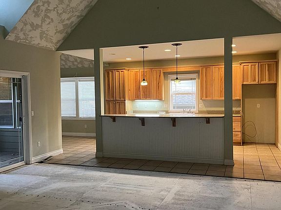 - Breakfast Bar, Ceiling Fan(s), Double Vanity, Enclosed Toilet(s), Open Floorplan, Primary Downstairs, Solid Surface Counters, Vaulted Ceiling(s), Walk-In Closet(s)