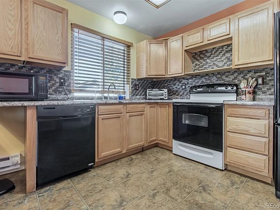 A wonderful home with an updated light and bright, large clean kitchen, lots of cabinets and counter space; glass tile backsplash, eat in nook with a covered deck right out the door! This home is located in the desirable Woodrim Subdivision which is approximately one mile from the Light Rail and easy access and convenient to most amenities including Cherry Creek State Park. The two bathrooms have recently been updated to a contemporary style. Open, inviting living room! The large extended primary bedroom includes extra flex space as well as a nice walk-in closet! The garden level family room is a great space for entertaining and/ or a media room. Newer flooring in lower level. Newer siding, paint, roof and gutters in 2019. Oversized 2 car garage - great for that extra storage! No HOA!