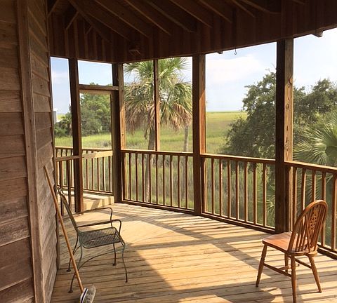 Low County Plantation Home - Located in Darien on Seabreeze Island, this home offers some amazing marsh front views! Featuring wood floors throughout, welcomes you to a warm living room with wood burning fireplace, kitchen with island and lots of cabinet space, elevator from ground to main level, custom 3 bedrooms, master on main with an "outside shower", 2.5 baths, rear screened porch, and 2 car garage with plentiful storage areas. Long driveway leads you to this private attractive setting