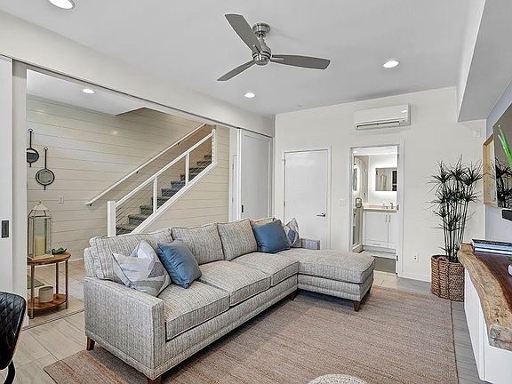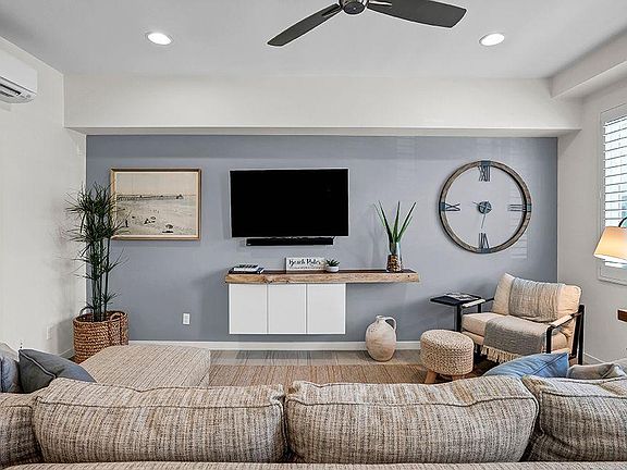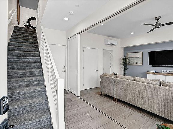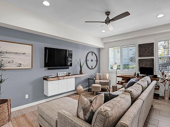 This professionally decorated, fully furnished, Townhouse includes 3 bedrooms, 3 and 1/2 bathrooms, a 2 car attached garage, a 2nd floor deck (off off family room), plus a full roof top deck (with a gas fire pit table and BBQ grill)! This home is located in the heart of Carlsbad Village where you will be able to walk to world-class restaurants, cafes, galleries, and shops. You'll also be just a short walk to the best beaches in San Diego. Featuring 3 Bedrooms (all with ensuite bathrooms). One bedroom (sofa bed couch) is on the ground level which is also a "flex/great room." The other 2 bedrooms (the primary bedroom has a king mattress and the guest bedroom has a queen mattress) are on the third floor. Approx. 2,100 sqft of total living space. The Townhouse includes a roof-top deck with unbeatable ocean and sunset views, various seating areas, a gas fire pit table, and a BBQ for your outside day/night enjoyment. Just a few minutes walk to some of the best restaurants and coffee shops in Carlsbad Village, including the award winning Michelin Star rated restaurant, Jeune et Jolie, Campfire, Wildland, Lilo, and Nick's Steakhouse (just to name a few). Various bike paths and pedestrian friendly walkways make for an easy stroll to the ocean. Luxury flooring, customized Quartz island/counter tops, extra deep/wide kitchen sink, & an under counter built in beverage fridge, provides an atmosphere for comfortable beach village living. Charming features throughout this pristine home include 2 privacy barn doors in the primary/guest bedroom and a sliding door on the first level for added solitude. Smart home offerings are vast & complete with a nest thermostat and a keyless front/garage door locks. The home also features tankless gas water heater & central air conditioning with a full-size Washer/Dryer, and 4 flat screen TVs. The attached garage (w/epoxy flooring) easily holds 2 vehicles plus room for bikes and beach gear. Ground Level: Garage and bedroom/office/flex great room + 1 full bath. The bed is a pull out sofa bed couch. Level 2: Kitchen, large custom Island counter top, dining area, 1/2 Bath, and an outside patio deck Level 3: Primary (King mattress) & Guest Bedroom (Queen mattress) each with ensuite full baths Level 4: Rooftop Deck that includes plenty of seating areas, a gas fit pit table, and a BBQ. Note: This home has no elevator. Min 30 day rental. Call owner to discuss more specifics. 1 month (minimum) - 12 month rental, contact owner for availability (utilities billed separately). Pets may be considered depending on size and breed. $500 non-refundable pet deposit required if pet is approved. Due at lease signing: 1st and last month rent + security deposit. Background/credit check and two references required. No smoking/vaping, non-refundable pet deposit (if pet is approved). Tenant is responsible for all utilities charges.
