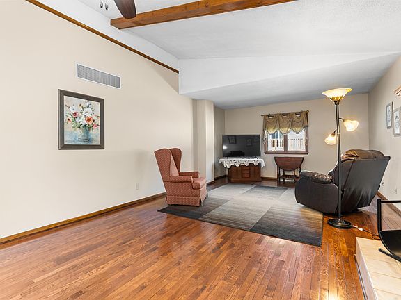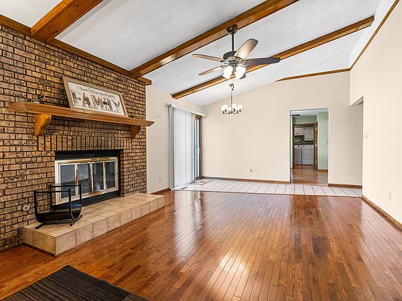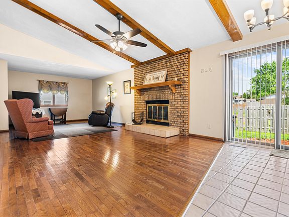 RANCH HOME in an EXCELLENT LOCATION! This well built home features a convenient floor plan. Enter into the spacious eat in kitchen, perfect for entertaining, offering loads of cabinets, a center island and ample countertop space. Cozy up by the brick wood burning fireplace in the 30x15 living room with gorgeous hardwood flooring and decorative beams. The main level laundry offers a washtub, an abundance of cabinets and countertop space. The primary bedroom is complete with an ensuite bathroom. Other main level features include bedroom 2, bedroom 3 and a generous size full bathroom. The unfinished basement is a blank slate for your imagination. Massive 2.5 car garage. The entire home from the main floor, to the full basement, to the oversized garage is loaded with closets and storage space. Cool the house down and circulate air with the whole house fan. Move-in just in time to enjoy the beautiful perennial flowers on your stamped concrete patio. Easy access to major highways, fine dining and shopping!