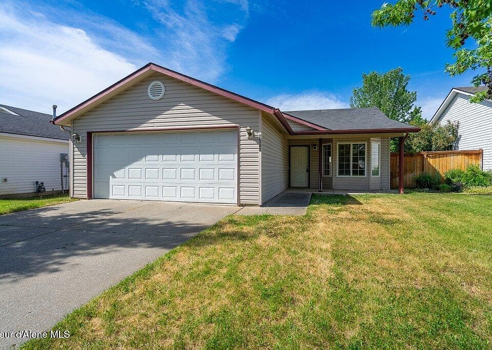 Located in the highly sought-after Coeur d'Alene Place neighborhood, this single-level rancher offers 3 bedrooms and 2 bathrooms with a spacious open-concept layout. The inviting living room seamlessly flows into the kitchen and dining area. The primary suite features a private en-suite bathroom and a generous walk-in closet. Two additional bedrooms, including one with French doors that make it ideal for a home office or guest room, provide flexible living space. Enjoy a fully fenced backyard, a 2-car garage, and a front yard with sprinkler system. All just a short walk to multiple parks, trails, and neighborhood amenities!