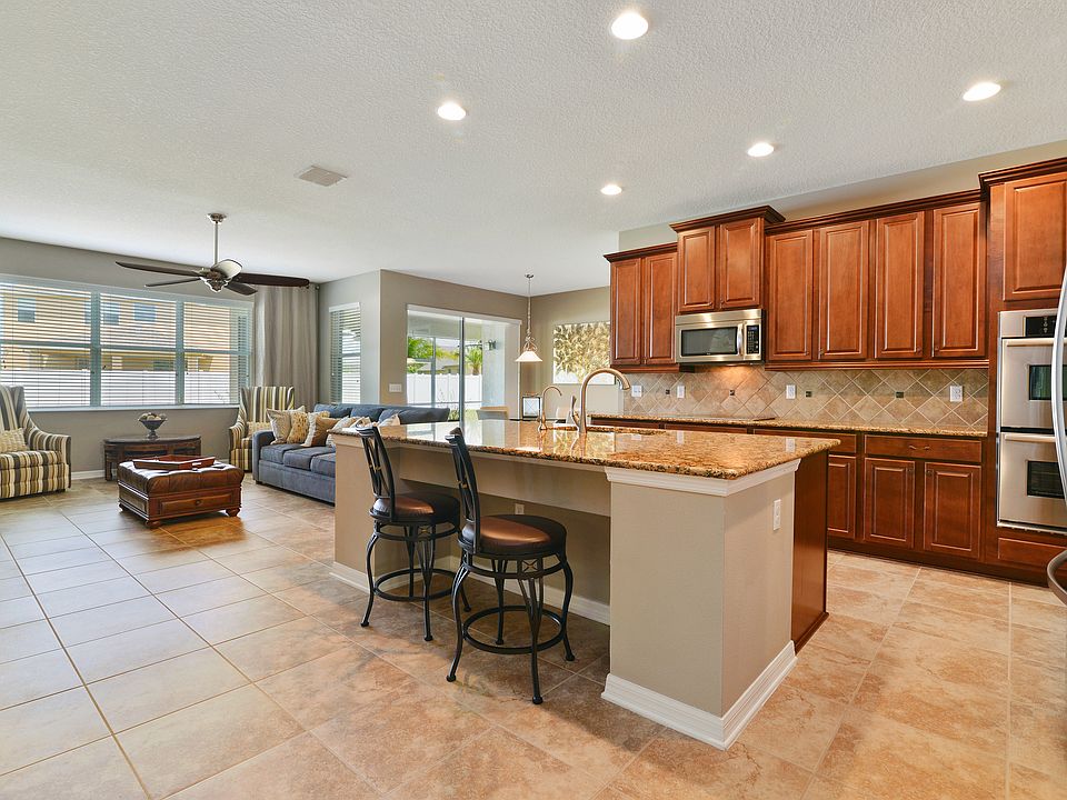 - Interior Features: Ceiling Fans(s), Eating Space In Kitchen, High Ceiling(s), Master Bedroom Downstairs, Open Floorplan, Split Bedroom, Stone Counters, Walk-In Closet(s), Crown Molding, Solid Wood Cabinets, Thermostat, Kitchen/Family Room Combo, Living Room/Dining Room Combo, Built in Features, Cathedral Ceiling(s), Tray Ceiling(s), Coffered Ceiling(s)