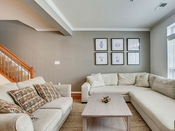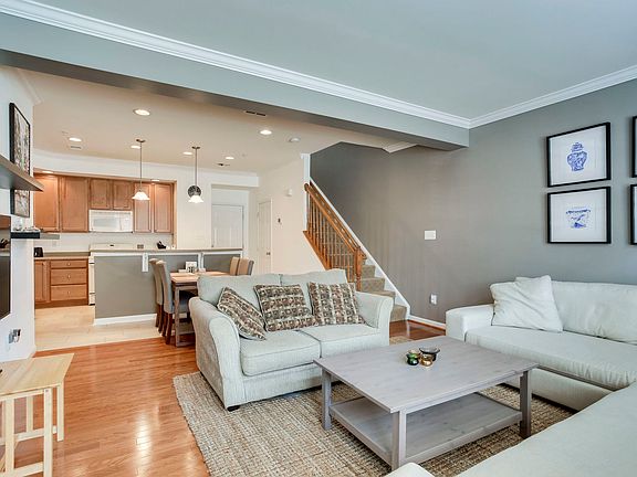 Living room w/wood flooring & crown molding. Generous master bedroom w/ bowed window & two closets, double vanity. All bedrooms have larger closets. Bedroom 2 has door to a deck. Garage connects to kitchen. Kitchen has popular under counter sink. Laundry rm w/ laundry tub. Two linen closets.