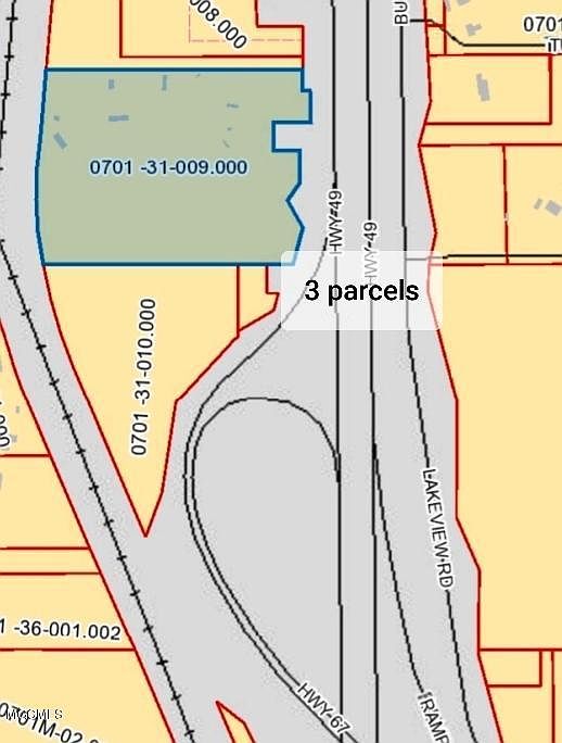 Prime location at NW corner Hwy 49 and Hwy 67 interchange. 3 parcels totaling 22.7 acres. Partially cleared. Buyer to satisfy boundaries. Additional 21.73 adjacent acres also available.