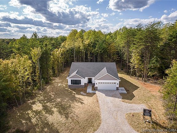 Why buy land and THEN build, when you can have it all right now........This amazing and rare property features a new home sitting on 4.6 wooded acres of pure beauty and plenty of privacy. You will love this beautifully crafted 3 bedroom - 2 full bathroom ranch home located in peaceful and scenic Borden Indiana. When you step into the home, you will immediately notice the natural light in the vast great room with vaulted ceilings and the openness of the bright and airy kitchen, where you can see it all including your private backyard forest while crafting your fall chili. Enjoy your morning coffee or unwind in the evening on the covered back patio, where you can appreciate the wildlife and tranquility in your own private wooded sanctuary. The possibilities and space of what this property has to offer is endless. There is plenty of room on the property to enjoy fall bonfires, evening strolls in the woods, and many options to build that pole barn or toy garage that you’ve always dreamed of. This home also offers Andersen windows, insulated overhead garage door, and side man-door in the garage. All kitchen appliances are included with the home. Additional acreage available to purchase that is not included in the price of this property. Less than 10 miles from Champions Point Golf Course and I-65 Memphis Exit. Sq ft & rm sz approx.