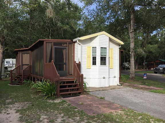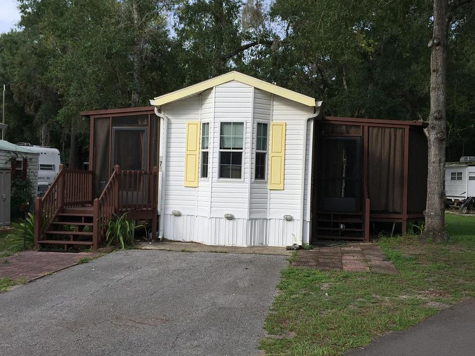 WHAT A RARE FIND!! This 2 BR/ 1.5 bath Park Model has TWO screened porches, one on each side of the home and a shed attached that you can enter from the west porch without going outside! Home is furnished, has all the ''bells & whistles'' which include full sized refrigerator, dishwasher, stack washer & dryer, microwave, most of the furniture, porch furniture, ceiling fans, tons of storage areas, shower-bath, mirrored closet doors & built in dresser storage in bedroom & so much more. Salt Springs Resort amenities include pools, Lodge/Clubhouse, tennis court, shuffleboard, boat ramp on Little Lake Kerr, dock, swimming area, water, sewer, basic cable, yard care, dog park, gate keeper, road maintenance & much more (included in the HOA fee). This is a ''one of a kind'' find in the Resort