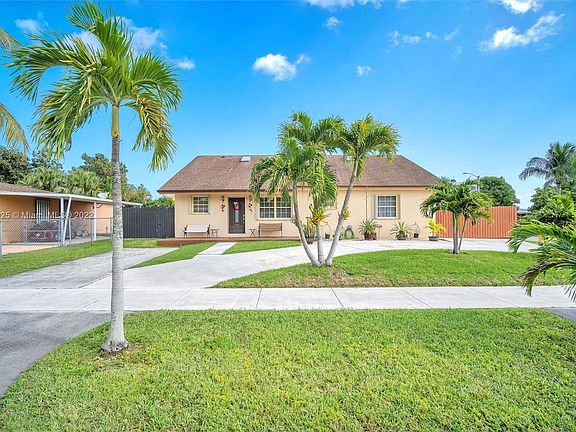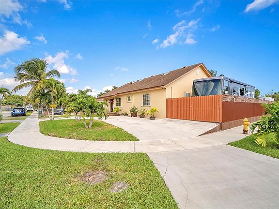 Great opportunity to own! 4 bedrooms, and 3 1/2 Bathrooms, on a private fenced corner lot. Two master suites upstairs and downstairs. two floors for added privacy. Higher ceilings than average add natural light throughout the house. Gourmet kitchen to delight the chef with plenty of storage! A flowing floor plan for entertaining leads to a large patio area with a pool, jacuzzi, and wet bar! And that's not all... new paint in and out, a new roof, new plumbing, and two new A/C units in 2021. Could you ask for more? YES! Security cameras, hurricane shutters, 20 Palm trees, plenty of parking for your boats, Rv/toys, and I am not done. Potential 1/1 rental for $1950. It is located near new construction, a turnpike, an outlet, shops, homestead hospital, the keys, and more!