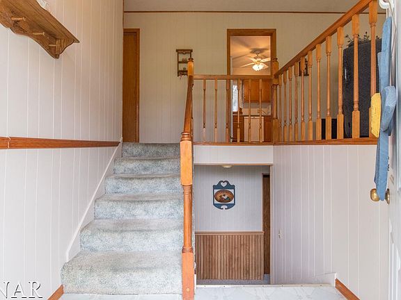 Wonderful Bi-Level across from Lake Bloomington! Close to park, fishing, boating & more. Screened in porch perfect for relaxing and enjoying wildlife and sunsets with no back yard neighbors. New septic in 2009. Updated kitchen cabinets. Some new paint in living room and foyer. Very quiet location.