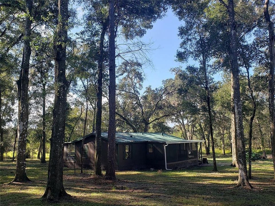 Welcome to your "Cabin in the woods!" Seclusion, nature, comfort, everything you've been looking for is here! Almost 2,000sq ft of usable space with 4 bedrooms and 2 full bathrooms, this completely remodeled and updated home offers everything you could want or need. Situated on roughly 5 acres of beautiful land, the options for you are endless, bring your horses, livestock, go target practice, whatever you can imagine! Inside the home features an updated kitchen with solid shaker cabinets, new appliances. The large living room off of the kitchen has a beautiful wood burning fireplace, sit and enjoy a family Christmas movie and listen to the crackle of the wood burning. 2 LARGE front and rear screened in patios offer additional flex space, sit and listen to the birds chirp on a Sunday morning. Love to BBQ? You have a massive patio/dock area to set up your grill while you watch the wildlife graze through. Brand new laiminate and vinyl flooring throughout, all new paint, new electrical, new AC, lifetime metal roof, updated bathrooms, everything is NEW! If the inside isn't enough, there is a large shed with a concrete slab perfect to work on your equipment or added parking space. This home is your perfect, quiet, quaint, "Cabin in the woods."
