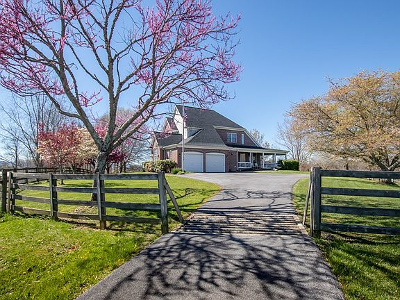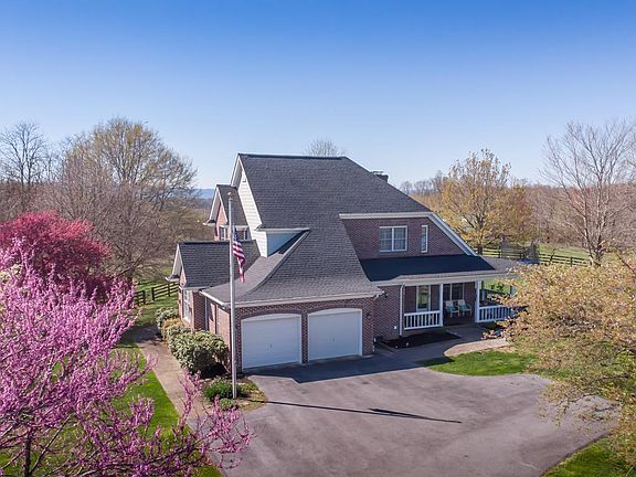 Picturesque 21+ acre horse property 5 minutes from historic Abingdon, Virginia. This unique property has 360-degree majestic views as well as a 5-stall horse barn. The house is an all-brick Southern Living design with cathedral ceilings, 5 bedrooms 4 baths. Home has an open floorplan with a combined great room and kitchen. Large dining room off the kitchen. 2 bedrooms are on the first floor. Primary suite with private porch, walk-in closet, jetted tub, two sink area, separate shower and water closet. Upper level has 3 additional bedrooms. Current owners replaced all first-floor flooring with bamboo as well as totally renovated the kitchen. Roof replaced in 2024, replaced 2nd floor heat pump and new neutral paint first and second floors. Lower level is currently used for music, ballet studio, art studio, play space and workshop. All window treatments as well as washer/dryer to convey with the property.