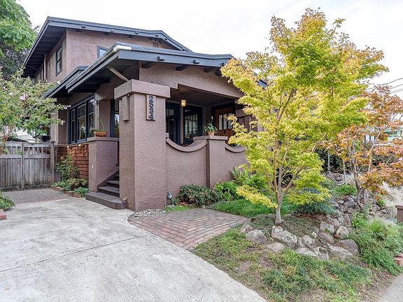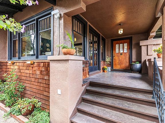 Classic East End 1915 Craftsman, exudes personality and charm from every room. Enter Into this light filled home with hardwood floors throughout, beamed ceilings, classic fireplace with high efficient gas insert, and built-in cabinetry. Dining room French doors open to the front porch with views of the Zen garden. Large kitchen with garden window, pantry, new tile flooring and appliances. Ground floor office, and master bedroom with ample closet space, and cozy retreat with access to rear gardens. Upstairs addition has 2 large bedrooms with walk-in closets and full bath. Recently remodeled for that fresh clean look! Christmas Tree Lane, excellent schools, restaurants, markets and entertainment. Close to Fruitvale Station Bart, Hwy 880, Ferry to San Francisco and much more.
