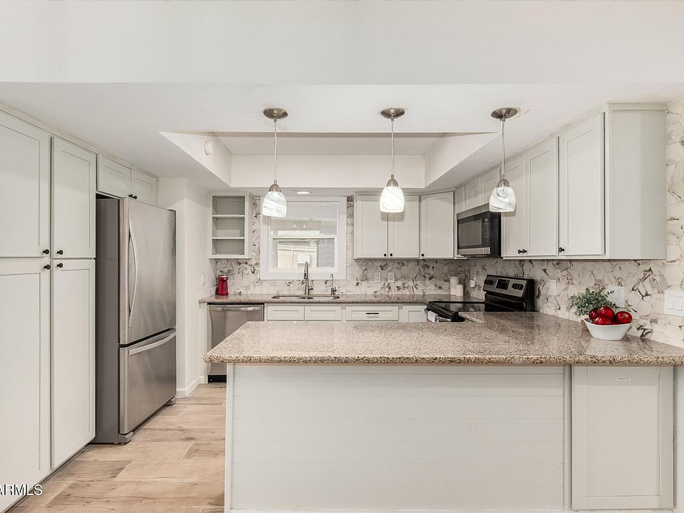 Modern lightingPrimary bedroomFully remodeled bathroomsDouble gateFruit treesBreakfast barDining area