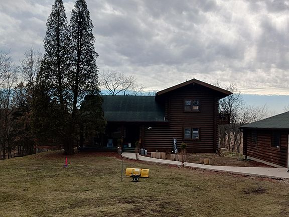 There are not many like this!! A secluded log home in a beautiful setting surrounded by timber a few miles from town. Take in a gorgeous sunset from the back multi-level deck. Enjoy your animals in the fenced in yard. Inside amenities include an upper level with 2 BR's and a bath - one of them being a spacious master BR with a walk-out balcony. Sit around a cozy fire in the spacious living room. Washer and dryer are on the main floor and a kitchen that looks out over spectacular wildlife and timber. The basement has several finished rooms that can serve various purposes. Outside amenities include a covered porch, tiered deck, and wood balcony. Don't forget the 30'X50' garage with heated floor. A pond is started and can be finished as well as a mother-in-law suite that can be finished. Make an appointment today!!