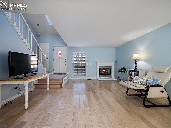 Welcome to this freshly painted District 20 charmer, which offers 2 bedrooms, 1.5 bathrooms, a finished basement, vaulted ceilings, skylights, a gas fireplace, central air conditioning, water filtration system, and a 2-car garage. Set up your barbecue or patio furniture in your private front-fenced patio that overlooks the lawn. Enjoy the clubhouse, swimming pool, tennis courts, and walking trails along Cottonwood Creek. The entire townhome community was painted this past summer. Centrally located, the Cottonwood Creek Community provides quick access to shopping, Woodmen Road, Acadamy Blvd, I-25, and Powers.