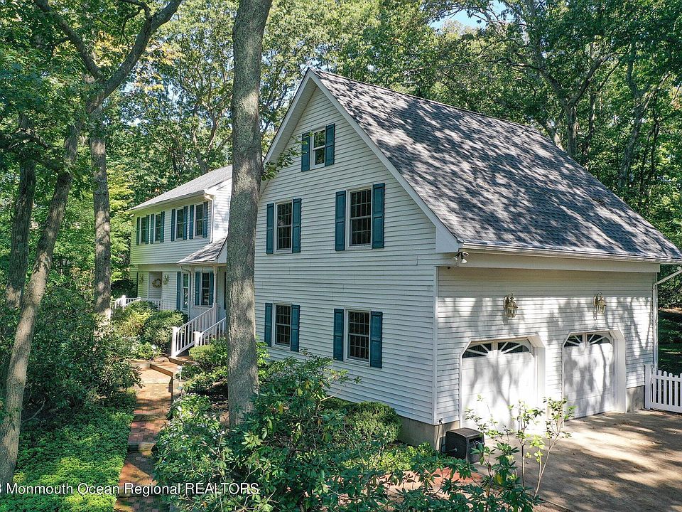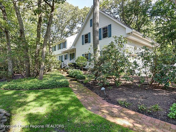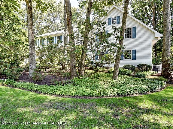 Updated 5 Bedroom 4 bath custom colonial is sure to impress the most discriminating buyer. The home is situated on a large, wooded lot nestled into a quiet neighborhood close to the Manasquan River, offering you the privacy and tranquility you deserve. You'll enter this home into the oversized and welcoming foyer. Completing the main level is the formal dining room, formal living room, the large family room complete with wet bar and wood burning fireplace. Not to be out done, the home offers a huge, bright, airy kitchen complete with center island, wood burning stove, stainless steel appliances (including Thermador double oven and cooktop), with access to the backyard Trex deck to enjoy those cool autumn evenings. The main staircase in the foyer takes you upstairs to 3 bedrooms and a large walk-in closet (large enough to convert to another bedroom). The oversized master bedroom includes a woodburning fireplace, a second walk-in closet and ensuite bathroom complete with skylights, jacuzzi tub and walk-in shower. A second staircase off the kitchen leads to a guest suite which includes 2 additional bedrooms and a private full bath. If this isn't enough, the home includes a large unfinished basement, 2 car garage, whole-house generator, sprinkler system to mention a few.