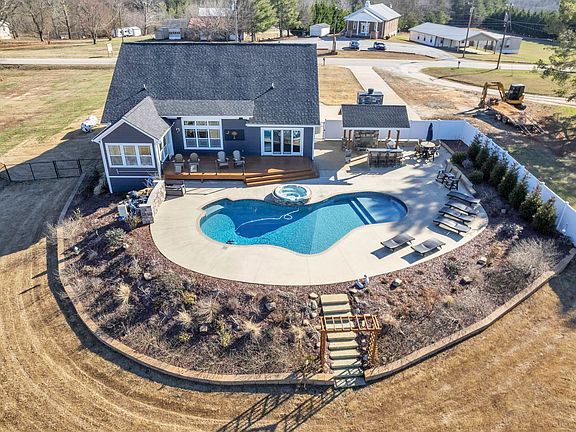 Open House scheduled for March 3rd has been canceled as the home has gone under contract. Retreat to your own slice of countryside paradise—a charming homestead tailor-made for those who cherish the allure of country living. Nestled on nearly 4 acres of sprawling land, this idyllic property boasts all the hallmarks of a classic rural estate, including fenced acreage, a pristine saltwater heated pool, and sweeping vistas of pasture and majestic mountains. Step through the inviting foyer into a versatile space that can serve as both a cozy fourth bedroom or a quaint home office, complete with glass French doors and ample storage. Entertain loved ones in the inviting dining room, where a trey ceiling adorned with understated rope lighting and sturdy columns exude warmth and hospitality. The heart of the home is a welcoming sanctuary that seamlessly blends indoor comfort with outdoor splendor. The open-concept kitchen and living area beckon with panoramic views of the surrounding countryside, framed by a trey ceiling adorned with subtle rope lighting and a timeless stone fireplace, evoking the charm of a bygone era. The chef's kitchen is a testament to rustic elegance, featuring generous cabinetry, granite countertops, and classic appliances that beckon you to whip up hearty, homemade meals. Retreat to the cozy master suite, where trey ceilings and recessed lighting create an atmosphere of serenity and relaxation. Pamper yourself in the spa-like master bathroom, boasting a luxurious jetted tub and a tiled shower, offering a peaceful escape from the hustle and bustle of everyday life. For those with a passion for country living, a new 25x30 metal barn awaits, with it's own water source and offering ample space for livestock, equipment, or a workshop. After a day of tending to the land, unwind by the sparkling saltwater heated pool, where a seven-foot tanning ledge, LED lighting, and a soothing hot tub with fountain await, promising endless hours of relaxation and enjoyment. The outdoor pavilion is a charming gathering spot, featuring a rustic stone fireplace, a cozy outdoor kitchen, and a grill perfect for hosting summer barbecues and family gatherings. Additional amenities include a laundry room sink, expansive deck for entertaining, surround sound system, plantation shutters, and a propane tankless water heater and irrigation system ensuring comfort and convenience at every turn. Located just outside of Greer, 10 miles from Hwy 85 and 19 miles to Hwy 26, this pristine countryside retreat offers the perfect blend of rustic charm and modern comfort—a place where you can reconnect with nature and create memories that will last a lifetime. Don't miss your chance to experience the magic of country living at its finest!
