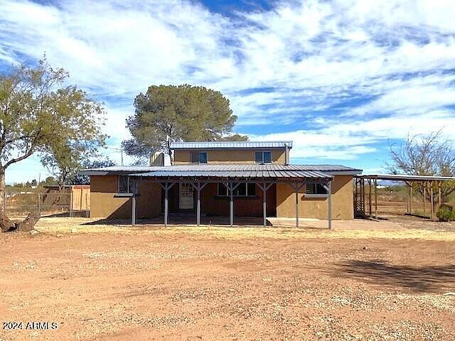 Home is back on the market after repairs have been made from previous inspection. Previous buyers did not give opportunity for sellers to correct. Now it is even better than before. Uniquely designed, remodeled, 2 story home on a 2 acre corner lot. Home has a private well and RV septic hook up already installed. The upstairs is the primary suite. Multiple living areas. New Paint, New Metal Roof, and New flooring throughout. No HOA. Plenty of room on the 2 acres for your horses, gardening, man cave/workshop, or anything else you can think up. Road up to home, Camino De Pampas is paved. Front of home currently has a large covered carport/patio. Back of home also has a covered patio. Home is back on the market after repairs made off of previous inspection