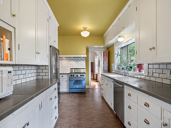 Beautifully restored Grant Park bungalow! Former pastry chef's kitchen boasts high end appliances including a Blue Star gas range & new Miele dishwasher. Ample storage, custom pull-outs, & Marmoleum flooring complete the look. Formal living room w/fireplace; boxed ceiling & Pratt and Larson tile in the dining room. Second floor with 3 bright bedrooms, full bath, & laundry. Beautiful outdoor space and a completely renovated artist studio/home office/guest room. This house is not to be missed! [Home Energy Score = 3. HES Report at https://rpt.greenbuildingregistry.com/hes/OR10203244]