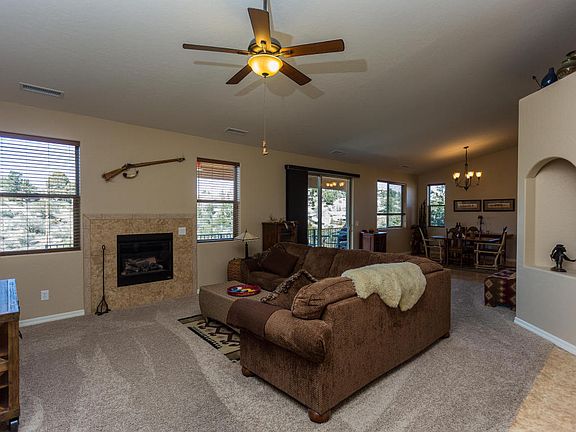 Outstanding curb appeal on this gorgeous home on over an acre in the heart of Prescott offers long distance beautiful views, great sense of privacy & beautiful upgrades throughout! On approach you will be impressed by stack stone accents, private front patio accented by a pergola and lovely landscaping! Interior features an open & spacious design concept, powder bath, extensive tile in traffic/wet areas as well as dining, extremely efficient plan with very little wasted space, rubbed bronze fixtures, gas fireplace in great room, spacious guest quarters and large laundry room w/storage closet. Kitchen features raised panel knotty alder cabinetry with crown moulding, stainless appliance package, 5 burner gas cooktop, large corner pantry, granite counters with granite ...Continue...