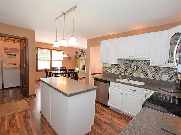 Beautiful 3-bedroom, 2-bathroom home in Uniontown with numerous updates throughout. The kitchen is up-to-date with gorgeous vinyl floor, white cabinets, stainless steel appliances, and a clean tiled back splash. The kitchen island offers additional counter space. Right off the kitchen, there's a bonus room perfect for a kitchen table or a lounging area. This room has a door leading to the cement back patio, detached two-car garage, and fire pit (recently built in 2015). Off the kitchen you'll also find the convenient first-floor laundry room and a dining room. The living room is spacious with a gorgeous Cathedral ceiling and a fireplace. The master suite located directly off the living room has its own recently updated bathroom and walk-in closet. Newer clean carpet throughout home. This home has a must-see basement -- the open floor plan makes it perfect for entertaining. You don't want to miss out on this home!