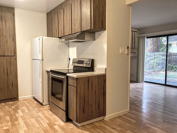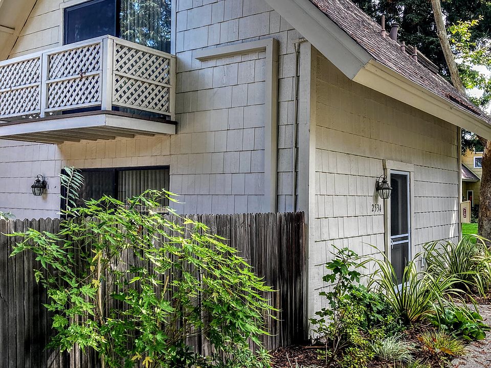 In the heart of Silicon Valley, this charming chalet is surrounded by a redwood forest, in a tranquil, small community with22 units surrounded by a beautiful lush landscaped garden. Pets OK. Fully air conditioned. Spacious living room with lots ofnatural light and decorative fireplace opens into the kitchen area and into a large backyard. Perfectly located dining areaadjacent to the kitchen. Downstairs also offers a half bath & laundry area. Two bedrooms with vaulted ceilings upstairs;the main bedroom has a balcony overlooking the redwood trees. Desired Charleston Village offers quiet living amongstgorgeous grounds. Unit has washer/dryer hookups plus complex has shared laundry facility. Two deeded parking spots,plus extra storage. One block from Palo Alto! Walk to Starbucks and to a park nearby. Close to CalTrain. Bike to Google,Facebook, Stanford, and downtown Palo Alto. Short drive to SFO and San Jose airport. Private: DIRECTIONS TO UNIT: Important - Some map apps bring you to incorrect locations. Please follow the directions entered here. From HWY 101 take the Rengstorff Ave Exit. Make a Right onto Middlefield. Pull into the driveway once you pass the yellow and white townhomes. Call w/any questions. Parking Spot is 34 One year lease, option to renew. Water and garbage fees included, tenant pays other utilities. Laundry hookups in unit, complex has shared facility as well. No smoking, parking is one covered and one uncovered dedicated space. Additional storage at covered parking space.
