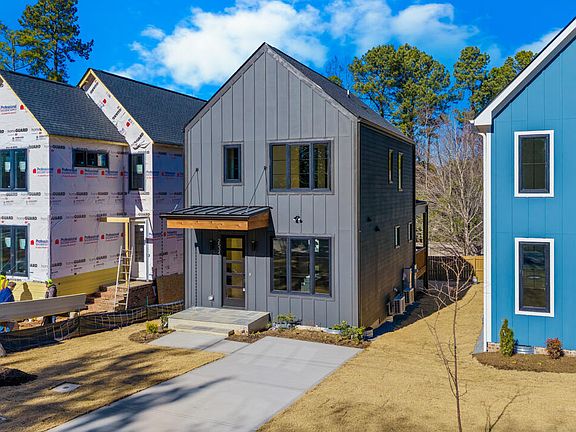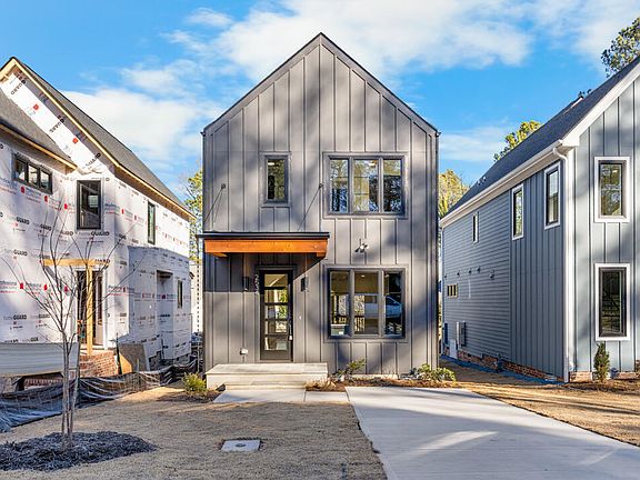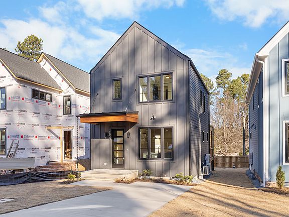 Modern architecture and refined finishes define this newly built home on W Wilson Street, thoughtfully designed with intention and attention to detail throughout. This residence offers a balance of open living spaces, private retreats, and elevated craftsmanship that feels both contemporary and inviting. The main level features an open-concept living and kitchen area filled with natural light from oversized double-pane windows. Site-finished hardwood floors extend throughout the home, complemented by clean lines, eight-foot doors, and real wood cabinetry. The kitchen anchors the space with high-level quartzite countertops, a generous island, KitchenAid appliances, a Cosmo microwave, and a pot filler over the cooking range—creating a space that is both functional and visually striking. The primary suite provides a private retreat, featuring vaulted ceilings that enhance volume and an en-suite bath finished with quality tile selections, quartzite surfaces, and modern fixtures. Additional bedroom space offers flexibility for a variety of uses while maintaining privacy and comfort. Outdoor living is seamlessly integrated with a covered porch that extends the main living space and offers the option to convert to a screened porch. The exterior is complemented by fresh sod, newly planted trees, and curated landscaping, creating a polished arrival and welcoming outdoor setting. A private concrete two-car driveway provides convenient off-street parking. Additional features include a smart-lock front entry, mini-split systems on each floor for added energy efficiency and comfort control, and quality construction materials throughout. Ideally located with easy access to downtown Durham, Duke University, dining, and local amenities, this home delivers modern living without sacrificing design, efficiency, or location. A thoughtfully designed new construction opportunity with premium finishes in one of Durham's most connected neighborhoods.
