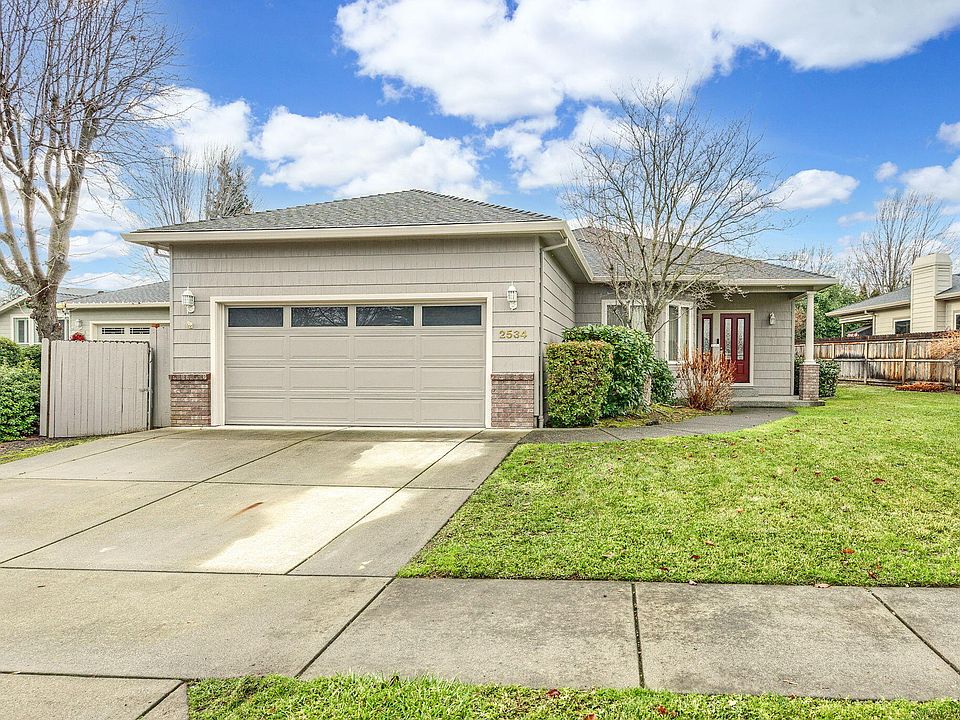 Nestled at the edge of a cul-de-sac, this well-maintained home boasts an inviting atmosphere with its split floor plan and high ceilings, complemented by hardwood floors in high-traffic areas and plenty of natural light. The spacious living area flows seamlessly into the kitchen and dining spaces, making it ideal for entertaining. The kitchen has ample storage and counter space, perfect for preparing meals. The primary suite offers access to the covered patio, and includes an en-suite with 2-sink vanity, separate water closet, and spacious walk-in closet. Two guest bedrooms and a full bathroom provide flexibility and comfort. The private backyard and covered patio are perfect for outdoor living, and a shed on the side yard allows walk-through access to the front and back yards for convenient storage of your gardening tools. Located in the Lone Pine boundary, this home offers easy access to schools, parks, and local amenities. Don't miss your chance to own this charming property!