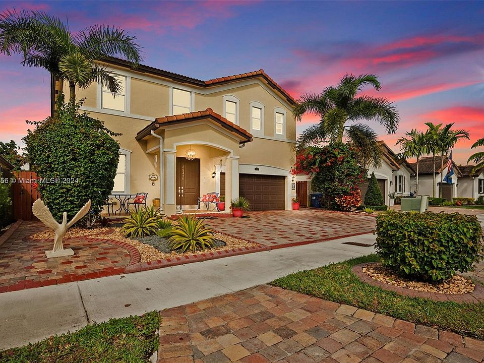 Welcome to this stunning 5-bed, 4-bath, 2 car garage home in Hemmingway Point. Enjoy the convenience of nearby highways, shops, and top-rated schools in this D.R. Horton built home. Inside, be greeted by luminous 18-ft ceilings and a seamless flow from formal dining to the integrated kitchen and living area, perfect for entertaining. Upgrades include scratch-resistant laminate flooring and retrofitted air conditioners with boosters for enhanced efficiency and cleanliness. Rest assured with hurricane impact doors and windows, providing peace of mind during stormy weather. Step outside to a lush backyard with Avocado, Lemon, and Papaya fruit trees. The covered Lanai provides the ideal setting for enjoying sunny afternoons or seeking refuge from rainy days. Schedule a showing today!