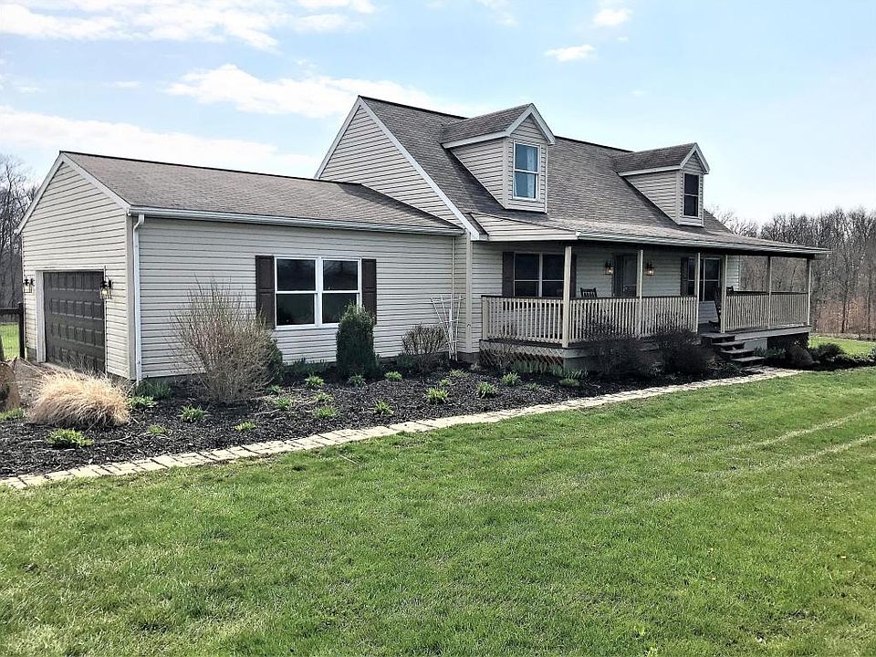 COUNTRY LIVING AT ITS BEST!!!CHARMING CAPE COD ON NEARLY 3 ACRES, RELAXING LARGE FRONT PORCH, 4 BEDROOMS, 2 BEDROOMS ON FIRST FLOOR AND 2 ON SECOND FLOOR, 2 FULL BATHROOMS, EAT-IN KITCHEN WITH ISLAND, WHITE CABINETS, TILE/GLASS BACKSPLASH, KITCHEN OPENS TO SPACIOUS DINETTE/DINING AREA, SLIDING GLASS DOOR TO DECK AND HUGE FENCED BACK YARD, kitchen and both bathrooms remodeled and all new appliances. New AC and Heat Pump in 2019 New 30x48 pole barn in 2022