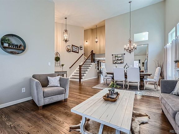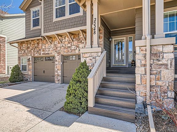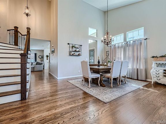 Welcome to this stunning 4-bedroom, 3-bathroom home located in the desirable Tallyn's Reach neighborhood. As you approach the property, you are greeted by a charming covered Trex front porch, perfect for enjoying the beautiful Colorado weather. Upon entering the home, you will immediately notice the gleaming hardwood floors that flow seamlessly throughout. The main level boasts an open floor plan that is accentuated by upgraded light fixtures and a staircase adorned with wrought iron spindles. The heart of the home is the gourmet kitchen, complete with granite countertops, stainless steel appliances, a pantry, and a convenient kitchen eating space. Whether you're entertaining guests or enjoying a quiet meal at home, this space is sure to impress. The family room is a cozy retreat, featuring a striking stone fireplace and built-in shelves, perfect for displaying treasured items. Additionally, a home office provides the ideal space for remote work or study. Upstairs, the oversized primary bedroom offers a tranquil sanctuary with an updated 5-piece bathroom featuring a luxurious soaking tub and a sleek barn door. The custom walk-in closet provides ample storage space for your wardrobe. Notable features of this home include crown moulding, adding a touch of elegance, and the cul-de-sac location providing privacy and a sense of community. The 2 1/2 car garage offers plenty of space for vehicles and storage. Stay comfortable year-round with central air conditioning, a must in the hot summer months in Colorado. The back trex deck is also covered to enjoy your afternoons. Don't miss the chance to make this meticulously maintained home yours. Schedule your showing today and experience the beauty and convenience of living in this exceptional property.