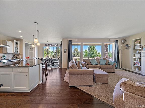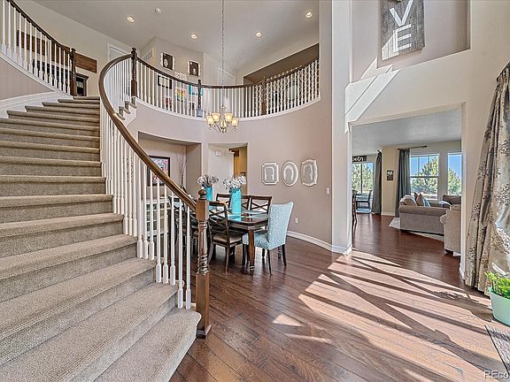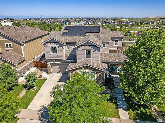 Welcome to your personal haven, nestled within the prestigious Cherry Creek School District. With paid-off solar panels that assure you reduced electrical bills, this five-bedroom, five-bathroom marvel is perfect for those who appreciate luxury and sustainability in equal measure. From the moment you step inside, greeted by a vaulted ceiling entrance, your eyes will be drawn to the graceful curves of the stunning staircase that lays the path to the house's private retreats. All bedrooms, situated upstairs, offer generous walk-in closets. The shared 'Jack and Jill' bathroom connects two bedrooms, offering a delightful, functional connection, while another bedroom offers an ensuite bathroom. Step into the expansive primary bedroom, with its own deck. Indulge in the breathtaking views of the mountains right from your private deck, with a remote-controlled covered awning. Awaiting inside is a walk-in closet with a central island. The primary bath, designed with double vanities, dual showers, and a soaking tub for unrivalled comfort. Moreover, the upstairs houses a huge laundry room with a connecting door to the primary closet. On the main floor, a spacious office provides the perfect setting for productivity. The heart of the home, the kitchen, is well-appointed with stainless steel appliances, a gas cooktop, double oven, huge island and a butler's pantry for all your storage and serving needs. Moving downstairs, the finished basement offers an expansive area for leisure activities, while automated blinds give you control over lighting and privacy. An oversized hot tub sits within a private courtyard. The three-car garage with epoxy flooring offers an ideal space for your vehicles or hobbies. The home backs up to a spectacular park and the new YMCA - a free membership is included for residents in the area. It's also close to Aurora Reservoir, where there are opportunities for fishing, hiking, biking, paddle boarding, relaxing, swimming, and sailing.