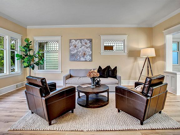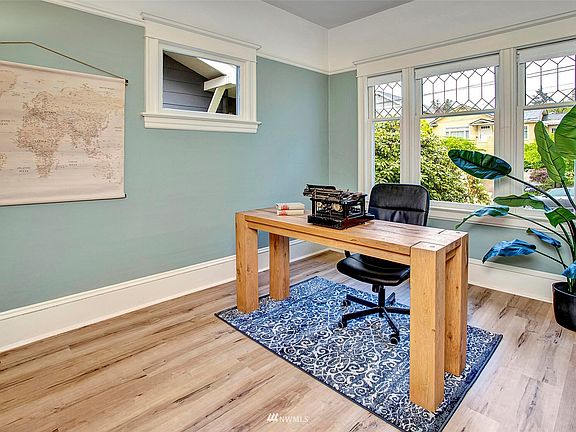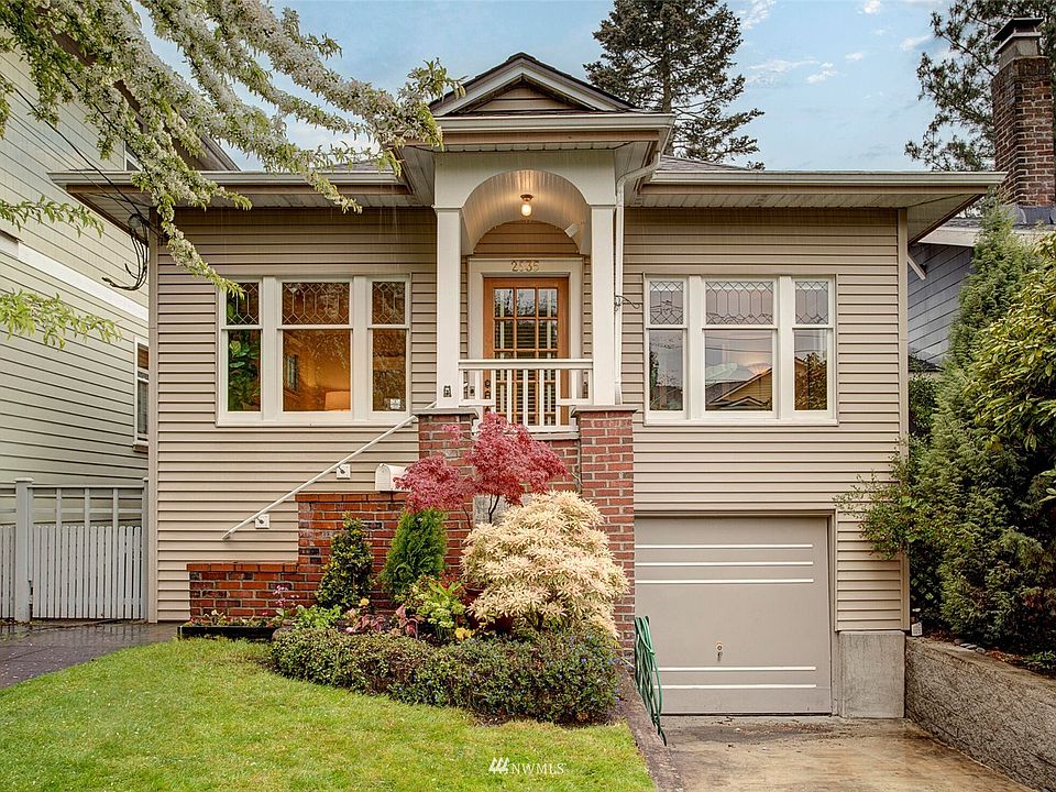 Location, location! Special craftsman jewel located at the top of Queen Anne, steps from Queen Anne Ave & David Rodgers Park. This home has been thoughtfully updated w/ attention to period details. Main level features spacious living room, formal dining room & three flexible use bedrooms, one full bathroom and a lovely light-filled kitchen with access to French doors leading to back deck, patio, and a gorgeous garden space; an inner city oasis, surrounded by trees on a dead-end alley with many Al fresco options! Finished daylight lower level features beautifully appointed primary suite w/ walk-in closet and versatility for rec room, gym & office. Attached garage & workshop. Stone’s throw to shopping & dining. Minutes to downtown and SLU!