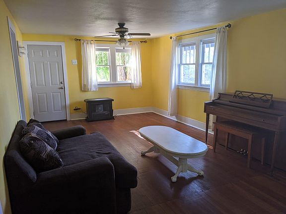 This is a cozy home with a large fenced yard. Pets of all kinds allowed w/ deposit. There is ample parking in the long driveway and on the street. Utilities include water, garbage & recycling, AND high speed internet. The rooms are furnished with beds only (beds are new). Living room furniture is negotiable. Bedrooms are carpeted, freshly steam cleaned. Renter responsible for heat (kerosene tank) and electricity. Yard mowing is covered by landlord. No smoking in the house. The bathroom has shared access by either room, see house map below. Appointments to view the home are limited, contact asap.