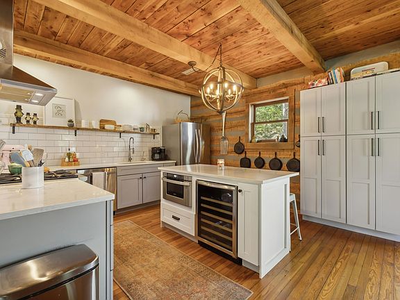 FIRST TIME ON THE MARKET! "VERY SPECIAL" AUTHENTIC LOG HOME ON 31+/- SECLUDED ACRES, BUILT W/ 150 YEAR OLD LOGS. VINTAGE VIBES W/ A MODERN FEEL. This Incredible Log Home Was Custom Built With The Most Beautiful Of Features. From The 2 "Real" Stone Fireplaces & Basement Walls, To The Circular Staircase W/ Live-Edge Handrailing, You'll See Why This One-Of-A Kind Home Is So Special! The Kitchen Boasts Kraftmaid Soft Close Cabinets, Quartz Tops, Comm Quality Stove & Vent Hood, SS Wine Frig., Micro, D/W & Refrigerator, Floating Shelves, Large Pantry & Eat-On Island. The Open Plan Design Makes This The Perfect Home For Relaxing & Entertaining. Explore Until Your Heart's Content & Ride The Trails Alongside a Creek Bed Catching Glimpses Of Wildlife & Beautiful Foliage. There's Also A Cool, Classic, Old Barn, A Detached Garage, & 2 "Mini" Log Buildings That Offer So Many Possibilities. If Tranquility Is What You're Looking For...You've Found It! Live Like You're On Vacation Every Day!