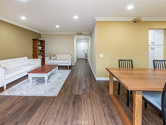Nestled in the sought-after Sunny Ridge community of Fullerton, this delightful 2-bedroom, 2.5-bathroom home offers a generous 1,407 square feet of living space, featuring numerous upgrades. The kitchen, dining room, living room, and hallway are illuminated with recessed lighting, and the entire home boasts exquisite SPC flooring. The first floor is elegantly finished with crown moldings, and all bathrooms and the kitchen are updated with Quartz countertops. The kitchen is further enhanced with modern white cabinets and stainless steel appliances. The house benefits from the added tranquility provided by triple-paned windows throughout. The inviting living room, located on the ground floor, includes a charming fireplace. Upstairs, you'll discover two master suites. The larger suite includes a walk-in closet and serene views of the greenbelt from its window. Outside, the property features a beautifully maintained spacious backyard. Convenience is key, with markets, restaurants, schools, parks, and the Metrolink Station all nearby. The community offers residents access to a large swimming pool and a relaxing jacuzzi next to the clubhouse. Don't miss out on this fantastic home - it's an excellent opportunity for first-time homebuyers or investors!