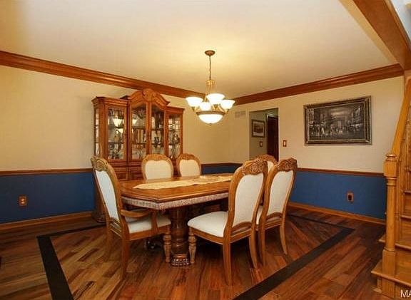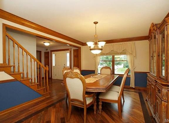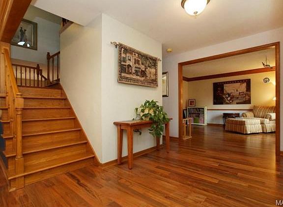 First Show, SUN., 6/29, 1:00-3:00pm. Popular Washington model in Monticello with great updates & INCREDIBLE Lower Level. Spacious Foyer. Beautiful Peruvian Tiger Hardwood thruout main floor! Crown & chair rail in formal living & dining rms. Family rm with blt in bookshelves & fplace- tv remains. All open to Breakfast rm with bay to huge deck- overlooking level part. fenced backyard. Updated kitchen, expresso cabinets, silestone countertops, gas range, plan desk, pantry. Powder rm with adult ht vanity. Main Floor Laundry has cabs & closet. Oversize 2 car garage (workbench & pegboard). "T"staircase to upper level boasts all new flooring! 16X 11 Bonus rm. Dbl doors to Master. Luxury bath -soaking tub, new shower & sep toilet rm. 3 addl bedrms share 2nd full bath. Lower level huge Bar with cherry cabs, seats 6, & porcelain flooring. Rec Room has pool table in it now. Media rm, office and full bath. Triple zone HVAC, Close to Hwys 40 & 364! Incl & Exclusions in Agent remarks.