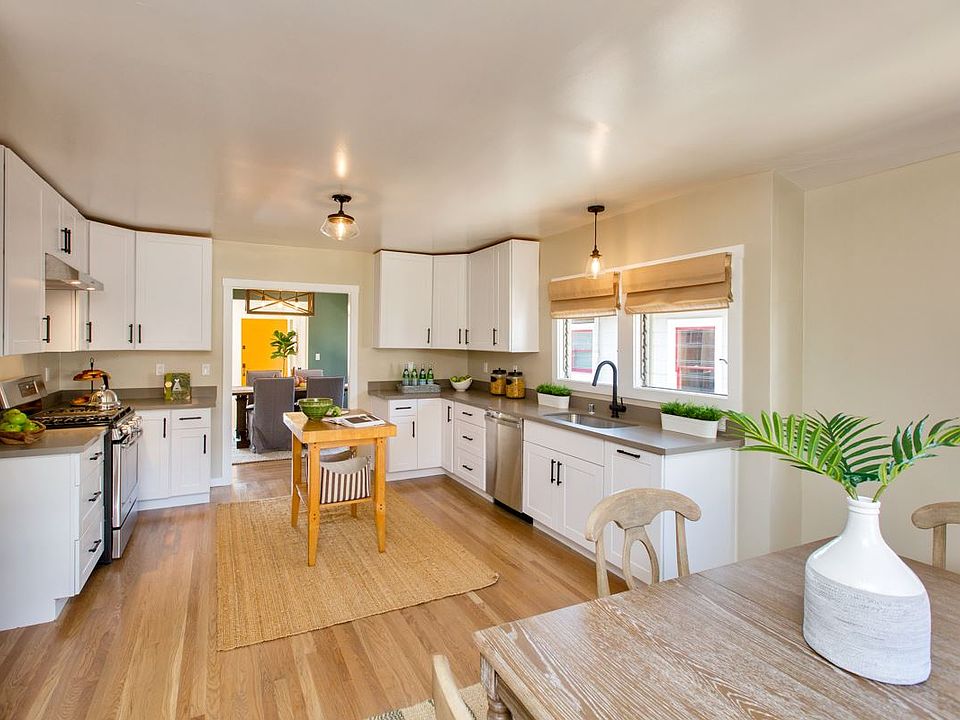Walk or bike to downtown Park Street and top schools from this completely remodeled Craftsman! Built in 1915, this traditional Craftsman bungalow now has new life thanks to a total remodel that honors both the age and original aesthetics of this vintage home. Situated just blocks from downtown Park Street, Edison Elementary School and Nob Hill Foods, this single-level home offers a formal living room and dining room, a spacious eat-in kitchen, a remodeled bathroom, a detached garage and newly landscaped front and back yards. Features include vintage hardwood floors and Craftsman windows, interior and exterior paint, new light fixtures throughout and a huge new kitchen with SS appliances and quartz counters. Easy and convenient commuter options include BART, ACTransit OX bus to SF, tech shuttles, Casual Carpool, I-880. This is a gorgeous, turnkey house in an unbeatable location!